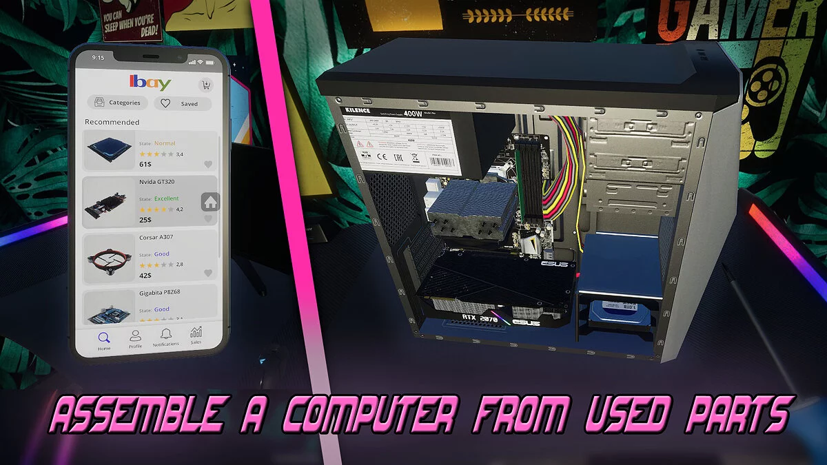 В My Gaming Club нужно построить свой бизнес, имея на старте только старый гараж. Для этого придётся обслуживать посетителей, убираться и закупать мебель, технику и еду. Ещё можно собирать компьютеры из комплектующих, пользоваться смартфоном с разными приложениями, включая камеру, календарь, звонки и заметки, а также покупать и продавать технику на сайте Ibay.