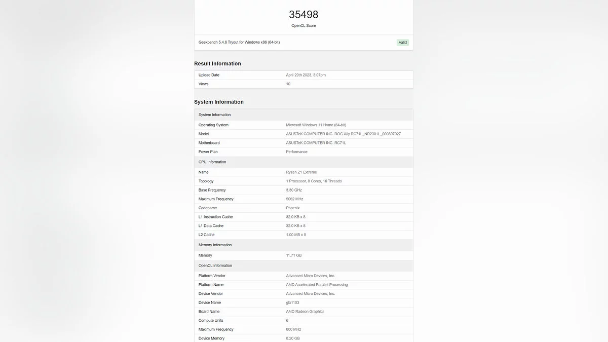 В сеть просочились подробные характеристики портативной консоли ASUS ROG Ally. Они появились в базе данных Geekbench, где тестировалось устройство.
