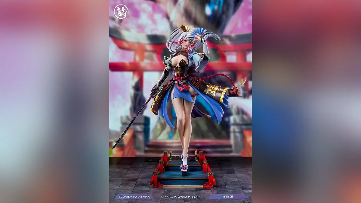 Фигурка выполнена в масштабе 1/4. Размеры следующие: высота — 50 см, ширина — 47 см, длина — 39 см. Стандартная версия включает героиню и небольшой постамент. Доплатив еще несколько тысяч, покупатель получит дополнительные предметы вроде зонтика и стойки с катанами.