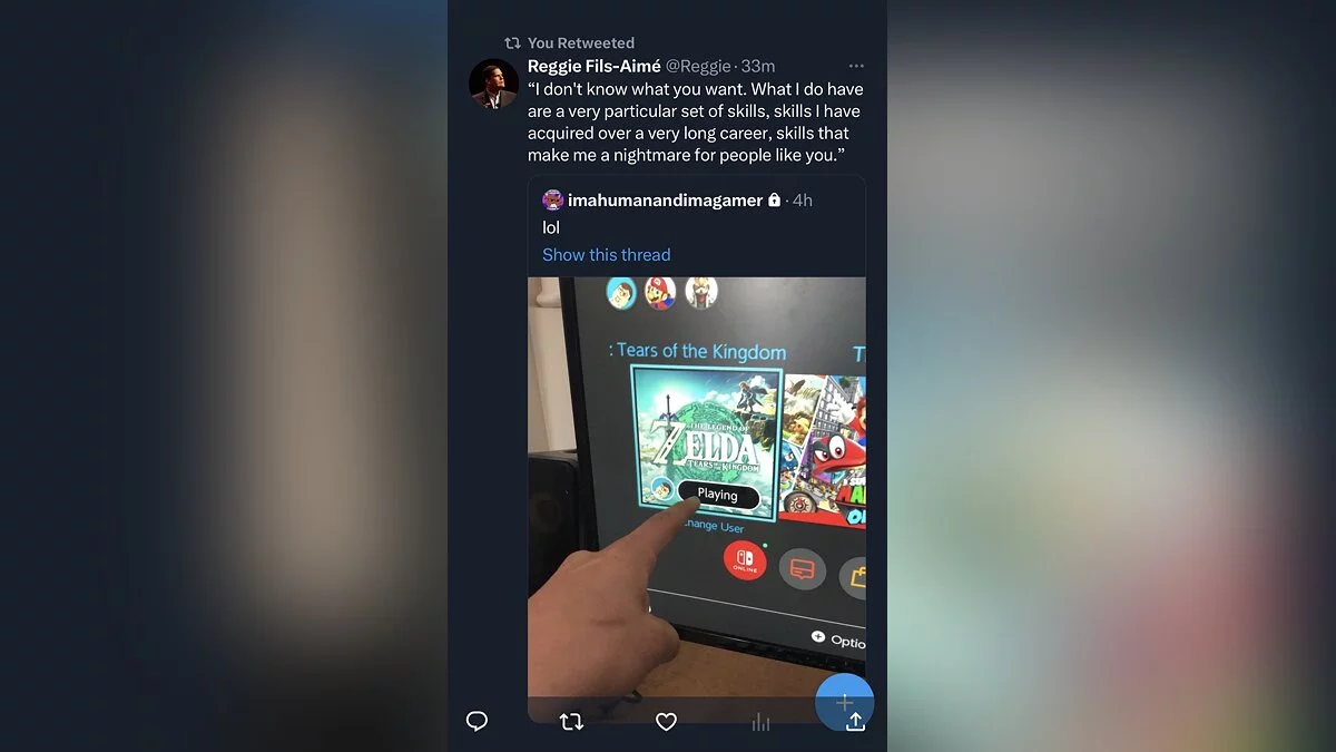Один из пользователей Twitter опубликовал фотографию с иконкой взломанной «Зельды». Реджи ответил ему цитатой из боевика «Заложница» с Лиамом Нисоном (Liam Neeson).