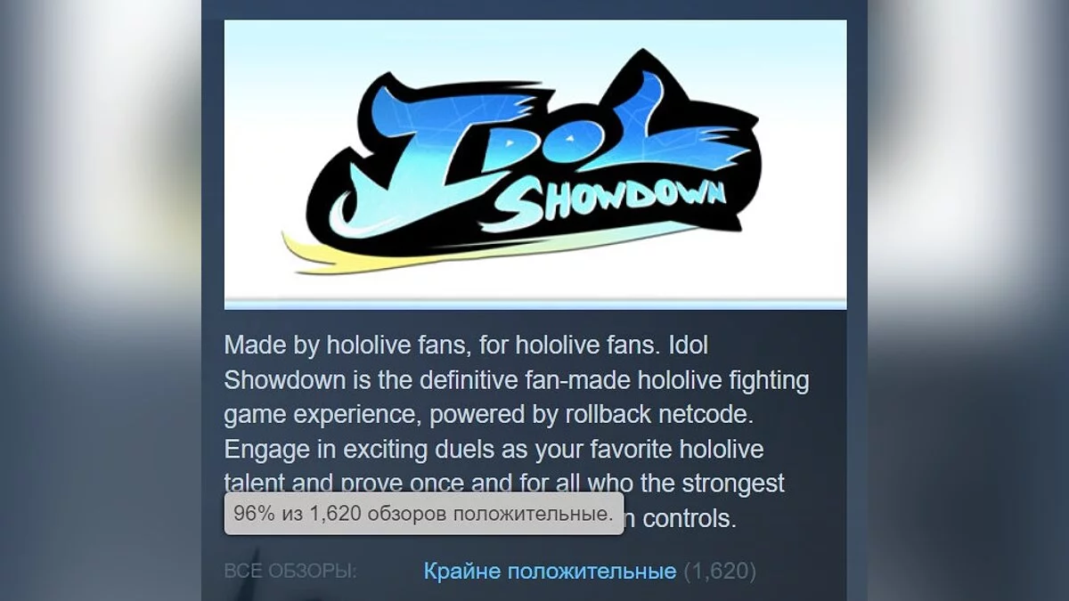В Steam состоялся релиз Idol Showdown, бесплатного пиксельного 2D-файтинга про витуберов компании Hololive. За день игра получила больше 1500 отзывов, а её рейтинг составляет 96%.
