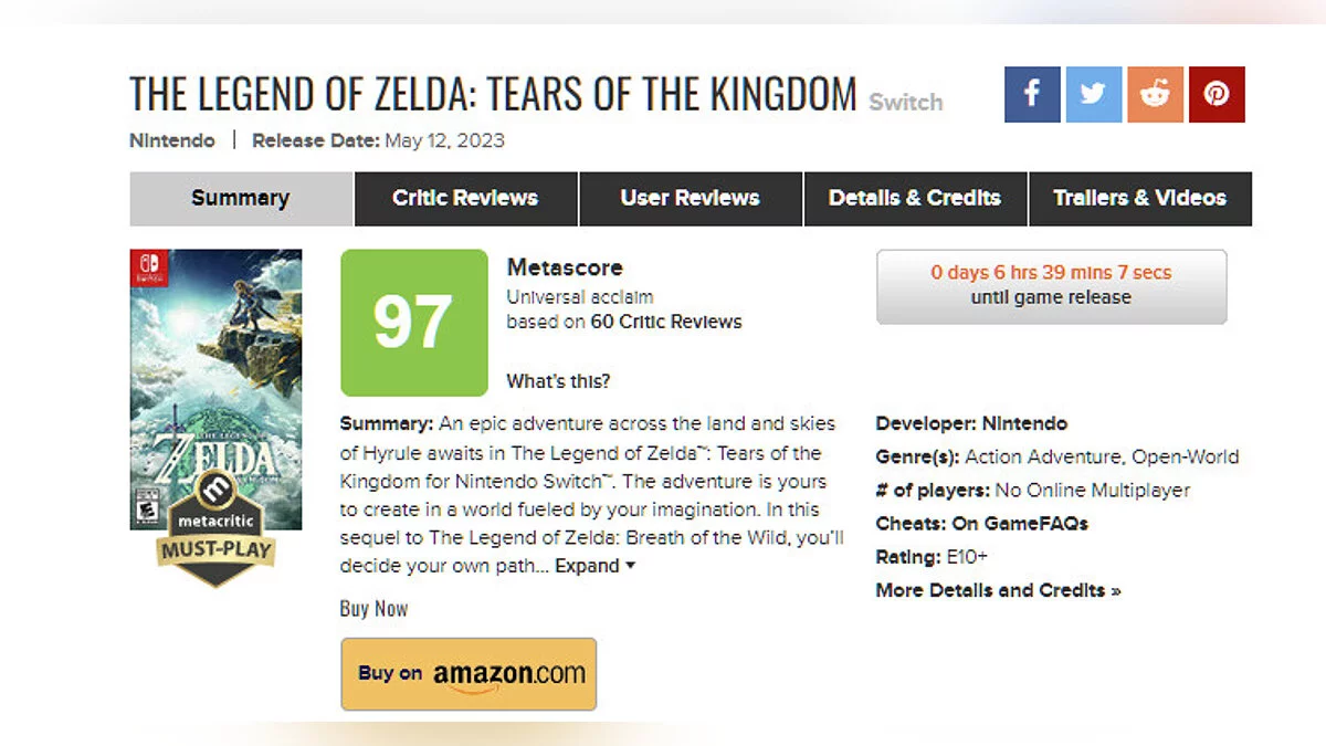 В сети наконец появились первые оценки The Legend of Zelda: Tears of the Kingdom. Похоже, что новое приключение Линка если не превосходит, то как минимум встает на одном уровне с легендарной Breath of the Wild. Сейчас у игры по 97 баллов на OpenCritic и Metacritic.