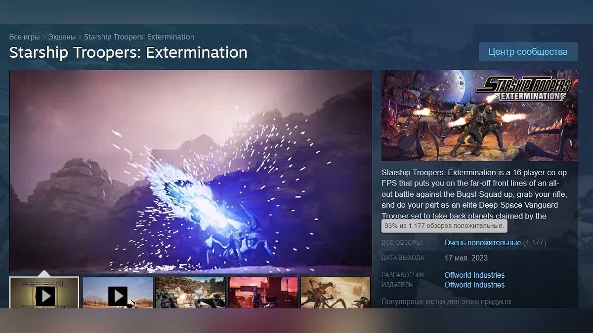 Студия Offworld Industries выпустила в раннем доступе Steam фантастический шутер по мотивам серии фильмов «Звездный десант» под названием Starship Troopers: Extermination. За первые же сутки проект получил очень положительные отзывы.