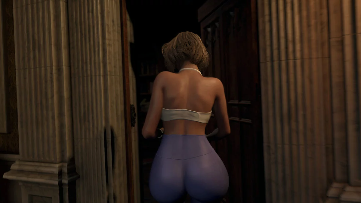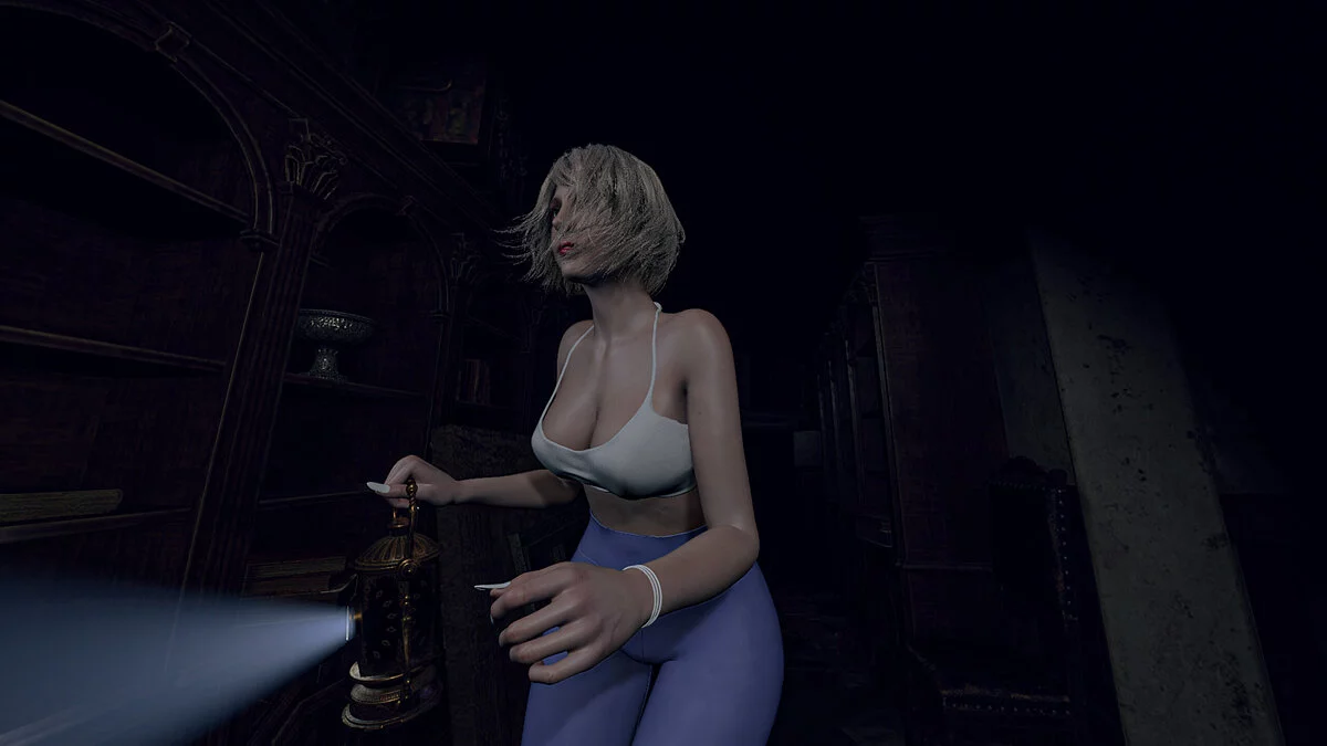 Модификация Ashley Slut одевает героиню в откровенный топ и прозрачные леггинсы.