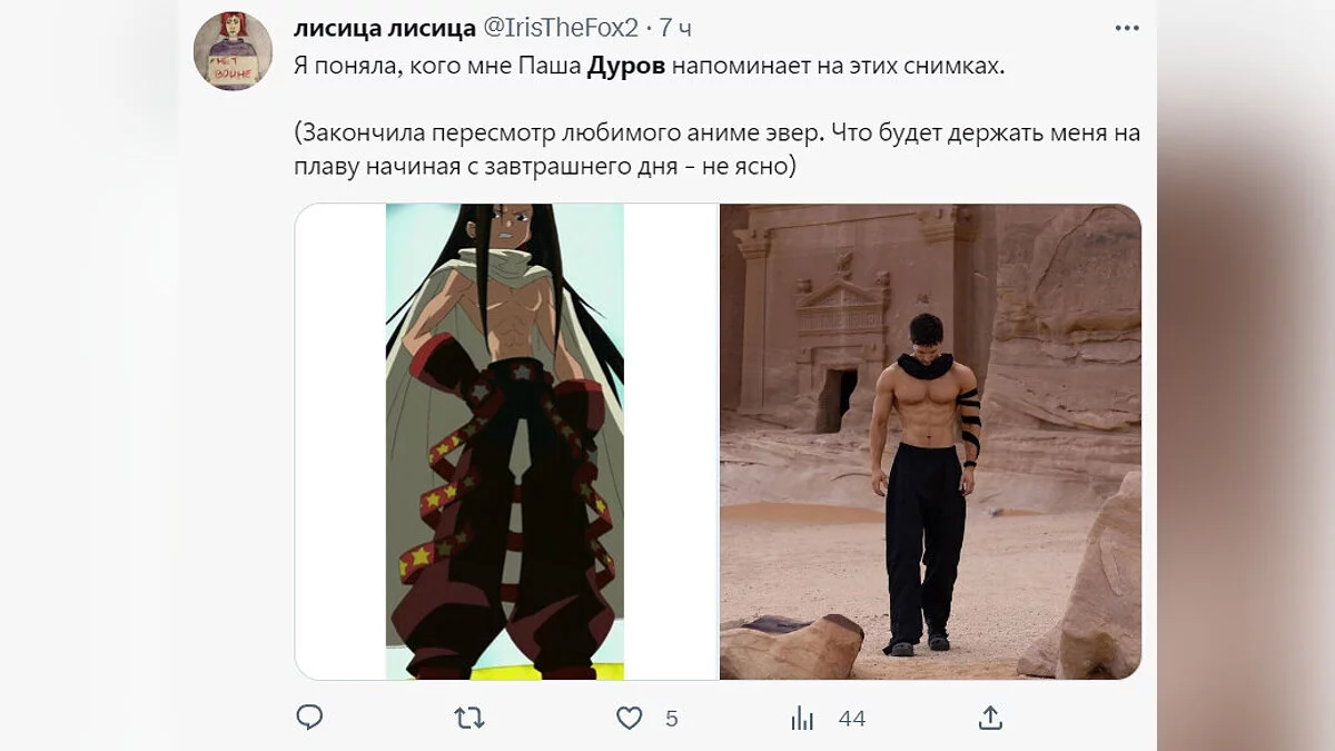 В интернете люди сравнивают Павла Дурова на новых снимках с различными персонажами из аниме, игр и фильмов.