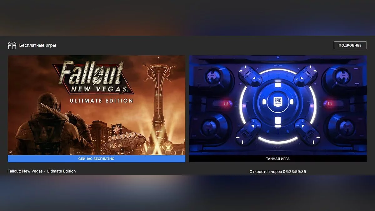 В Epic Games Store началась раздача еще одной тайной игры. Ей оказалась ультимативная версия Fallout: New Vegas. Акция недоступна для жителей России и Беларуси, но в магазине можно сменить регион.