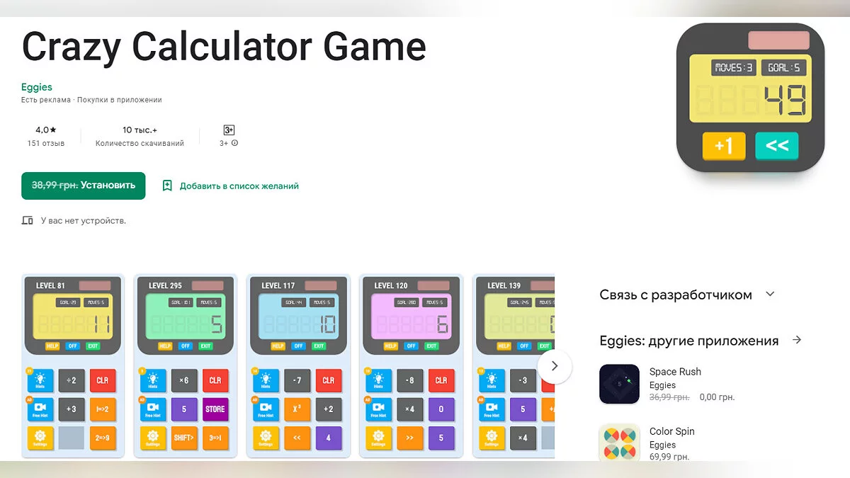 - Crazy Calculator Game — головоломка, механика которой основана на калькуляторе. Отлично подойдет для тех, кто любит решать математические уравнения (загрузить бесплатно).