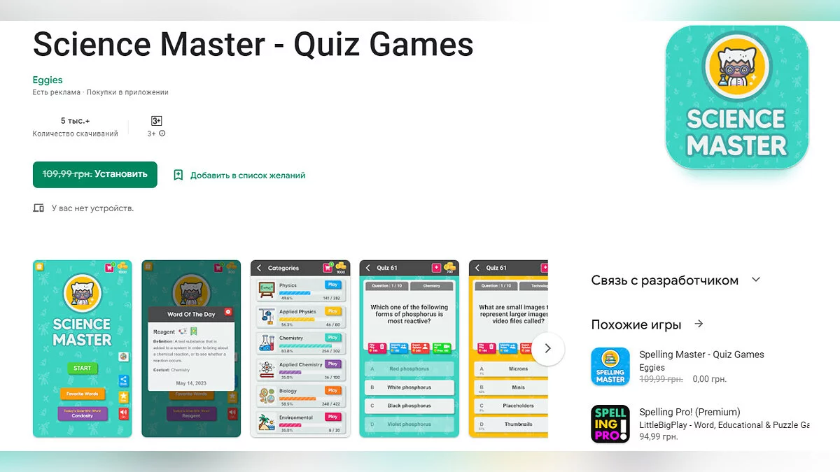 - Science Master — Quiz Games — научная викторина, в которой игрок должен правильно отвечать на интересные вопросы (загрузить бесплатно);