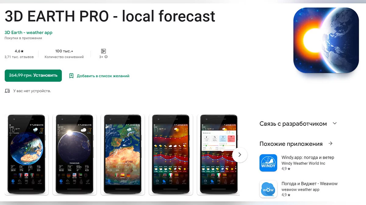- 3D EARTH PRO — local forecast — приложение, в котором пользователь может изучить Землю в трехмерном режиме (загрузить бесплатно);