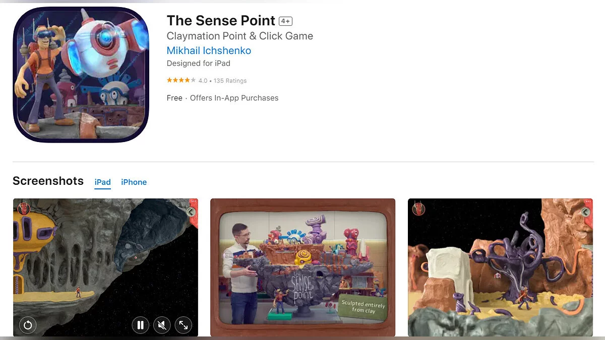 - The Sense Point — адвенчура с «пластилиновой» графикой, повествующая о героях, которые хотят раскрыть тайны целого космического острова (загрузить бесплатно);