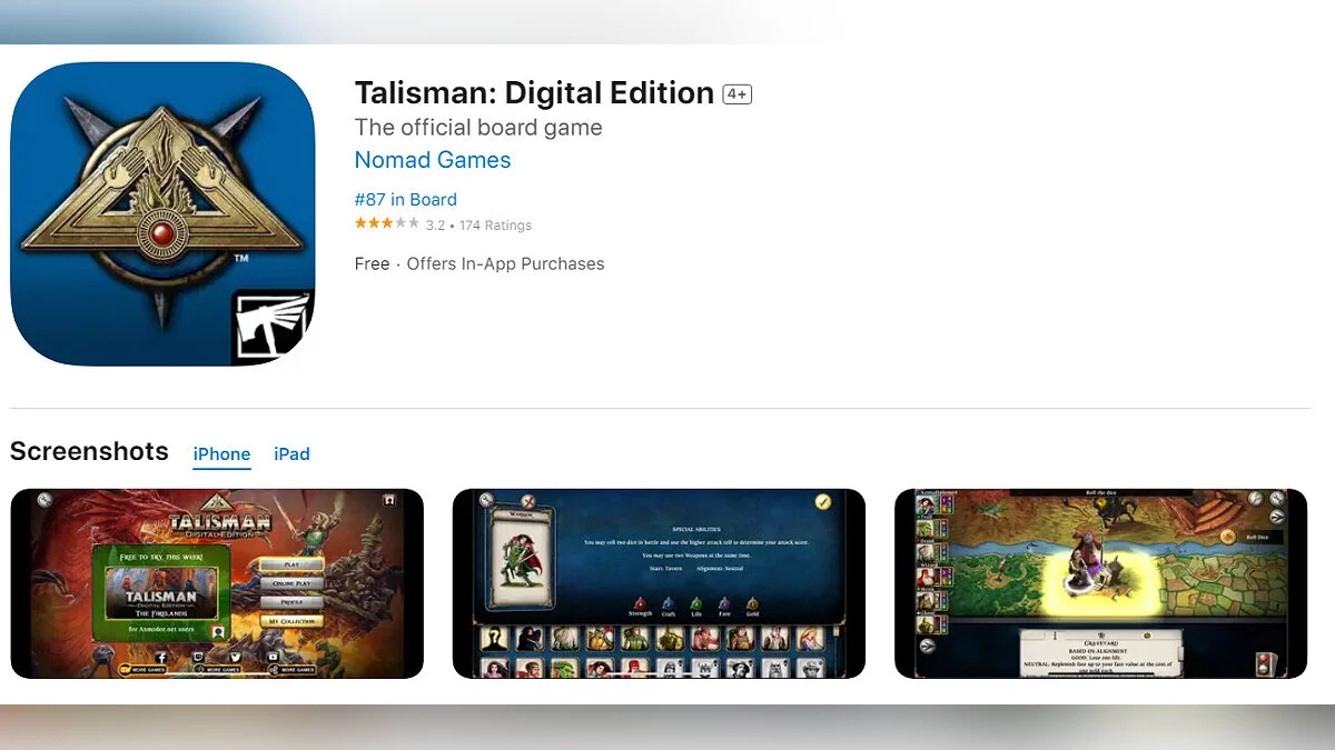 - Talisman — настольная фэнтезийная игра с огромным количеством персонажей, основанных на костях и картах (загрузить бесплатно);