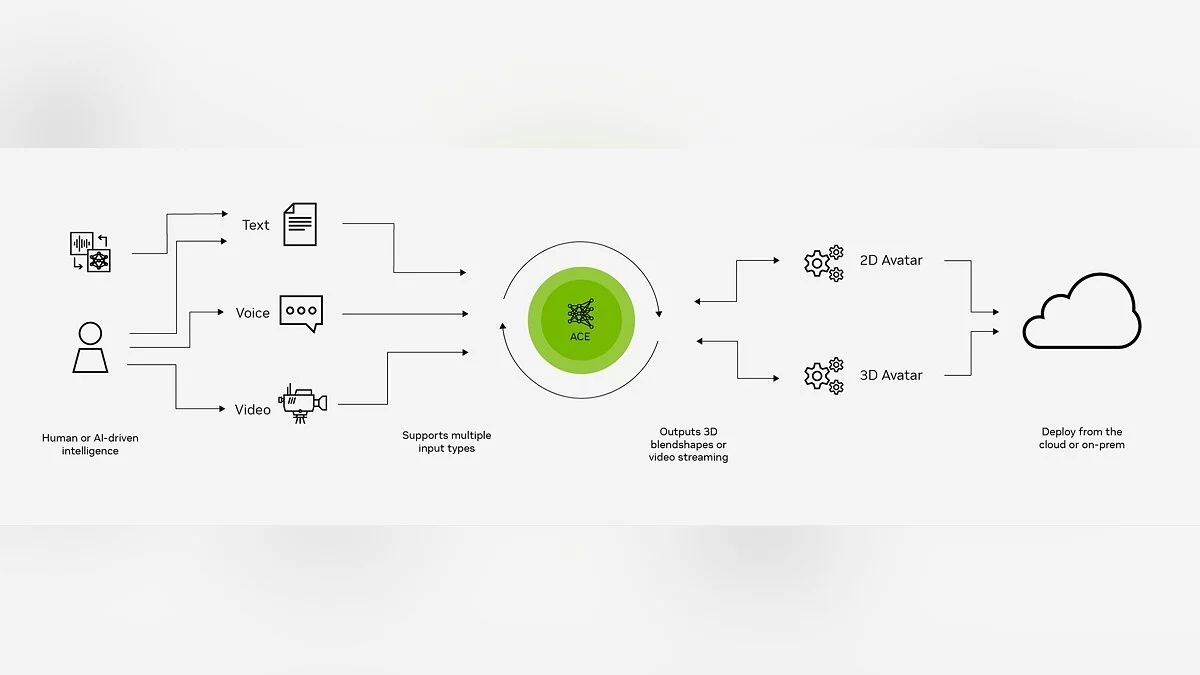 NVIDIA представила новую игровую технологию под названием ACE (Avatar Cloud Engine), которая базируется на искусственном интеллекте и предназначена для интеграции в NPC (неигровых персонажей). Компания опубликовала видео, на котором показала, как это все работает.