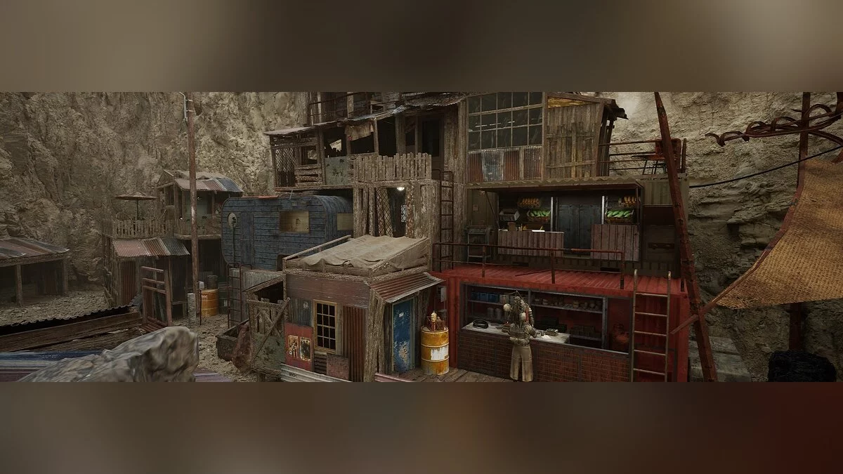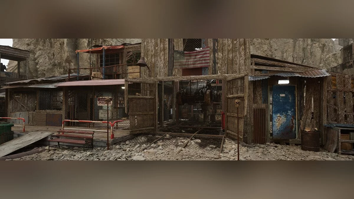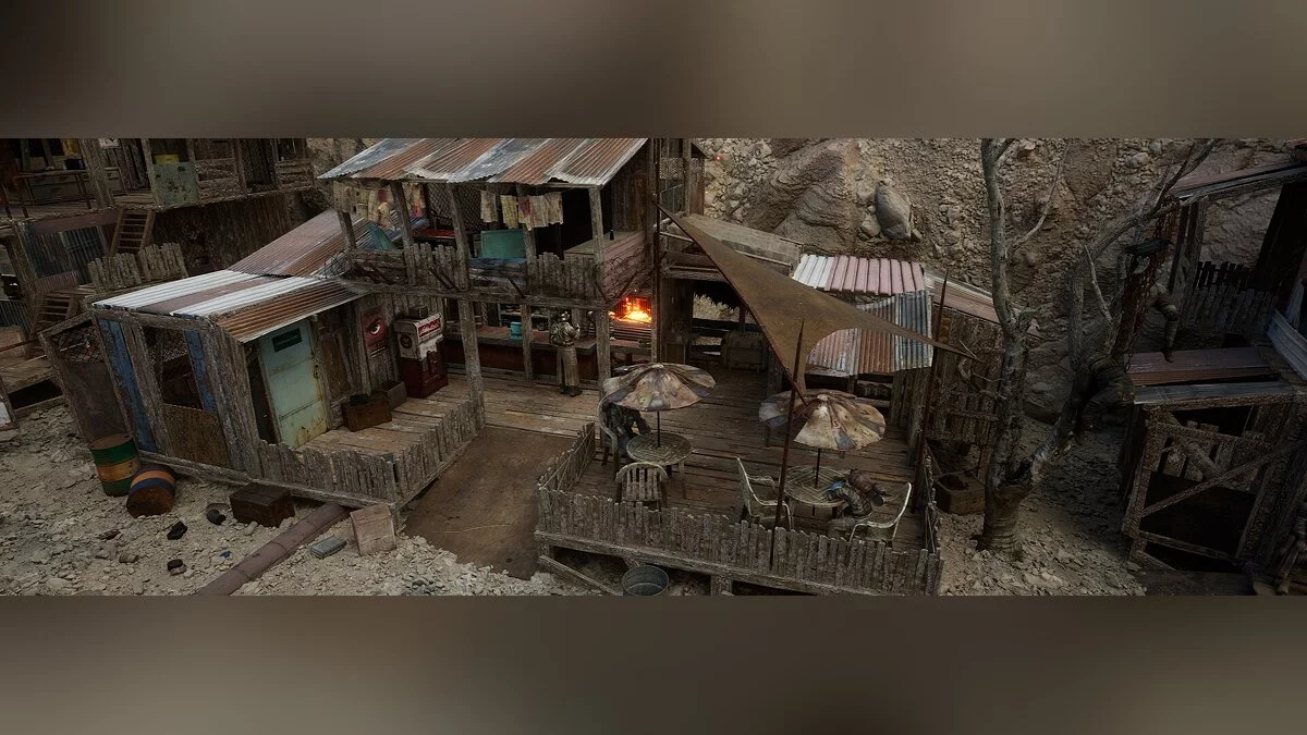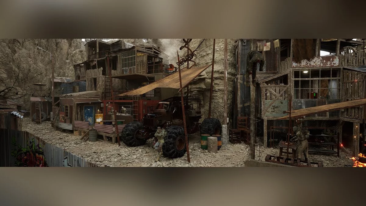 В своей работе художник создал постапокалиптическое поселение в духе четвёртой Fallout. Для этого он использовал текстуры из библиотек Quixel Megascans и Scans Factory.