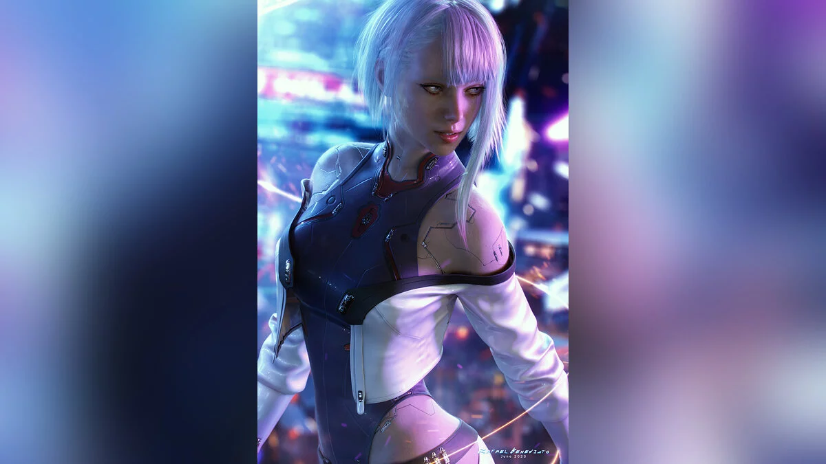 В мае прошлого года у меня было много свободного времени, поэтому я воспользовался им и сделал реалистичную интерпретацию Люси из Cyberpunk: Edgerunners. Вероятно, это моя самая выдающаяся композиция на данный момент, в соответствии с темным, но красочным стилем киберпанка.