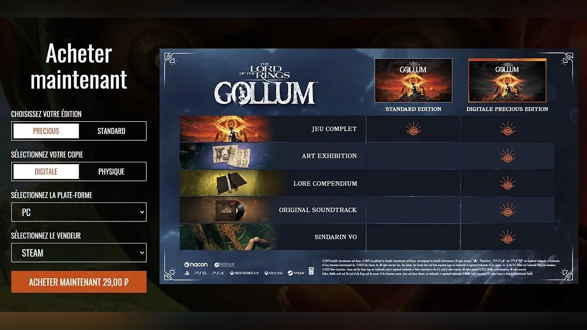 Пользователи сети обнаружили ошибку на официальном сайте The Lord of the Rings: Gollum — из-за нее Steam-версия игры продавалась всего за 29 рублей. Для этого достаточно было выбрать цифровое расширенное издание и оплатить покупку через систему XSolla.