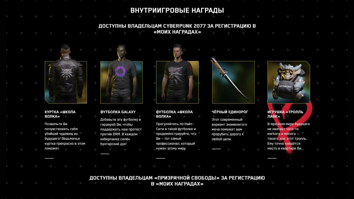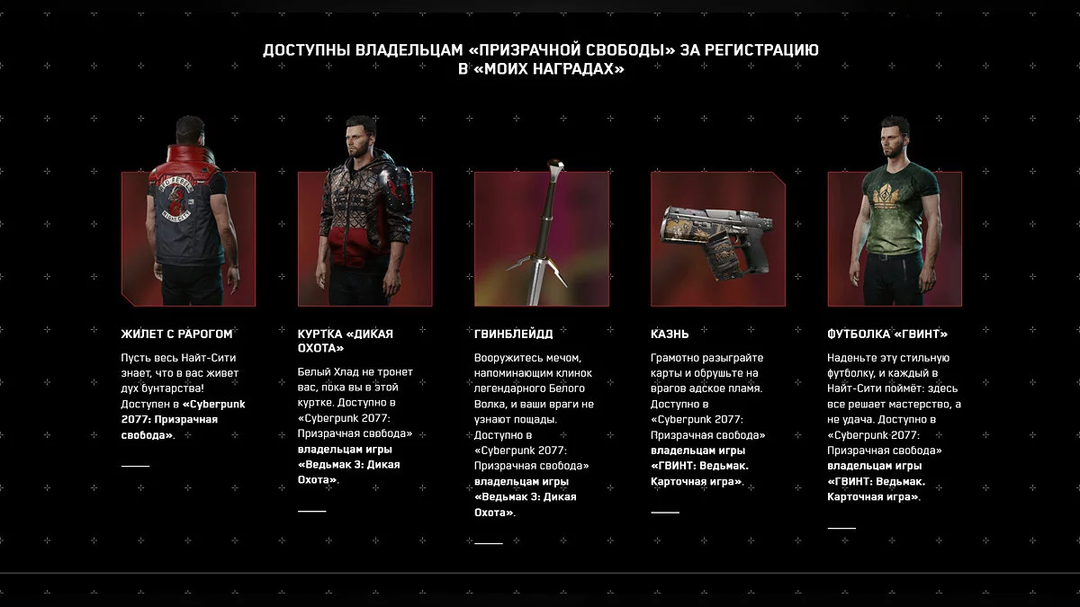 Разработчики приготовили несколько предметов для Ви. Больше всего повезло владельцам The Witcher 3: они получат в подарок куртку «Дикая охота» и серебряный меч «Гвинблейдд». Бонусы можно будет найти в тайнике в квартире главного героя.