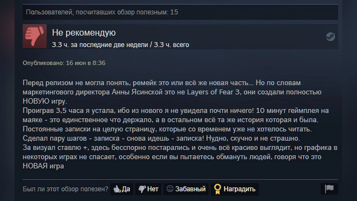 Пользователи Steam встретили игру более благосклонно. Сейчас ремейк может похвастаться 81% положительных отзывов. Игроки хвалят красивую графику, но ругают огромное количество записок, которые могут испортить впечатление.