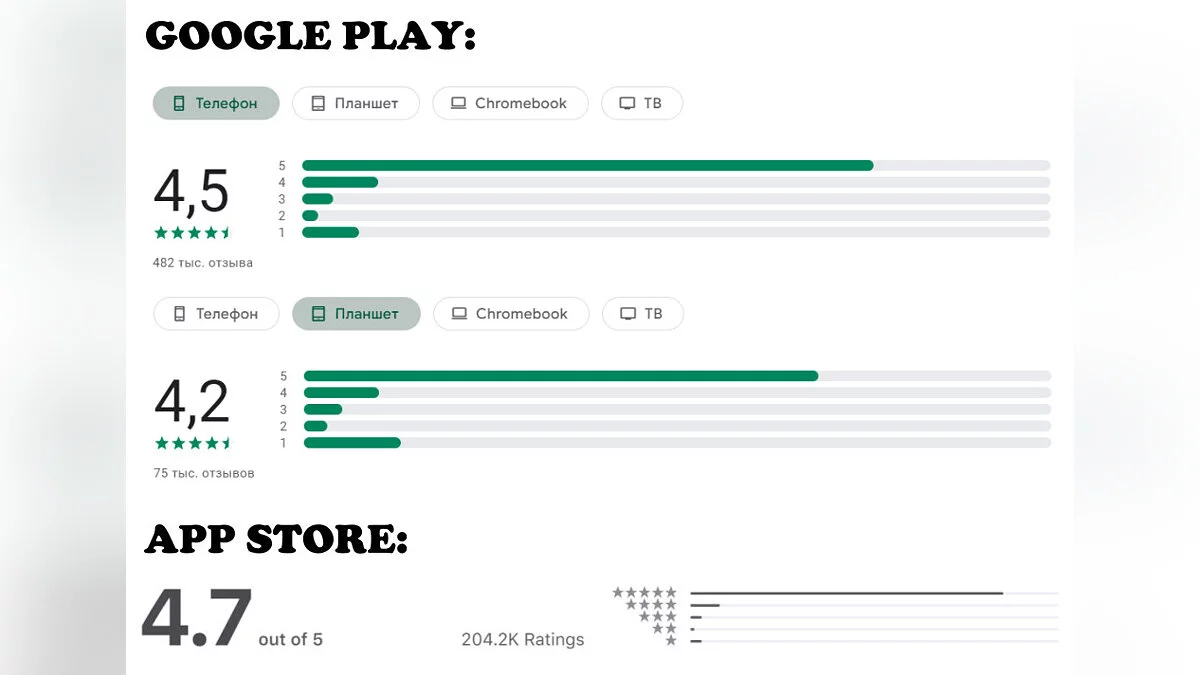 1v1.LOL довольно популярна на смартфонах — она имеет свыше 768 тысяч отзывов (564 тысячи в Google Play и 204 тысячи в App Store). Игра получила 4,4/5 баллов на Android и 4,7/5 баллов на iOS.
