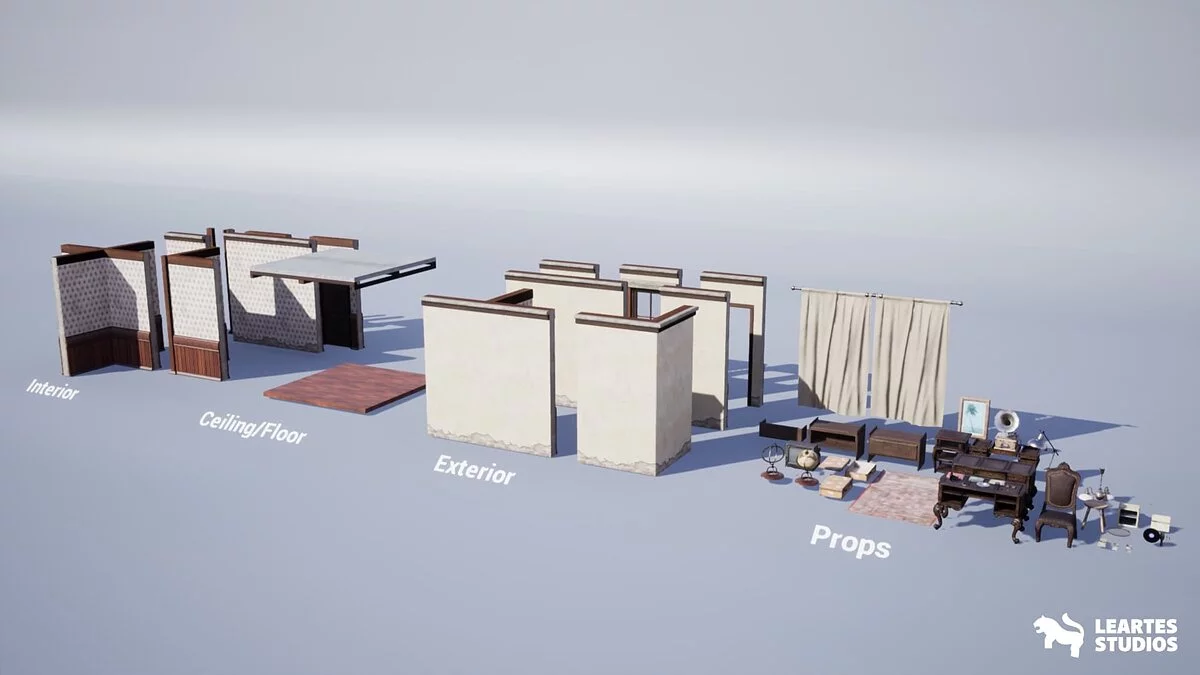 Набор фурнитуры для дома. Имеет проблемы с 4 версией, так как создавалась с учётом возможностей освещения UE5, но автор обещал посмотреть что можно с этим сделать