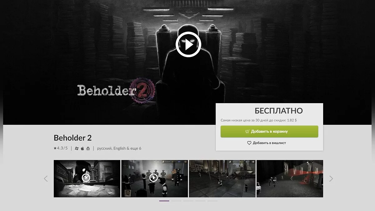 Халява: на ПК началась бесплатная раздача Beholder 2