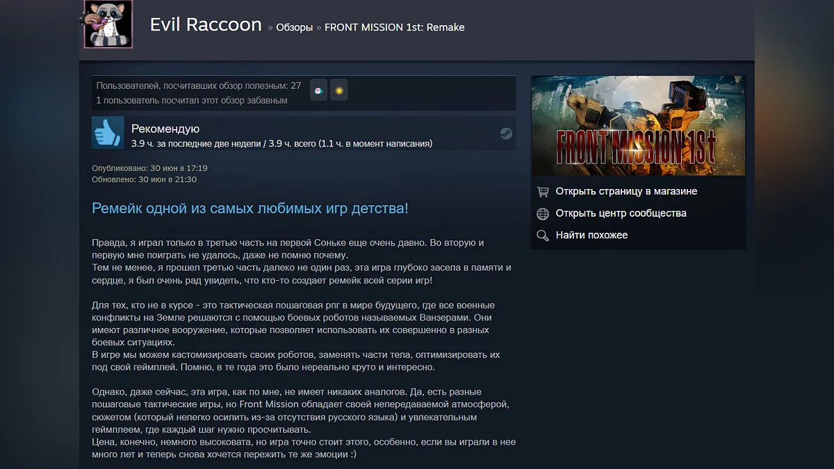 На PC и консолях вышел ремейк Front Mission с улучшенной графикой. В Steam игра получила рейтинг 96%