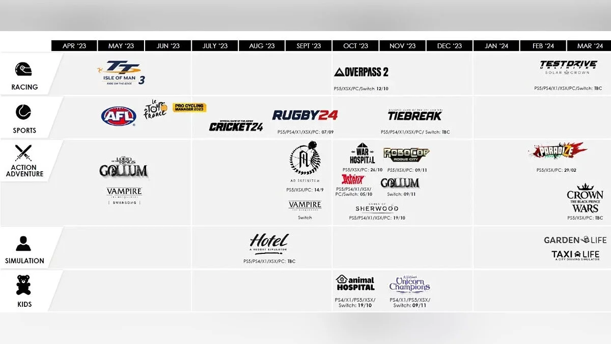 Изначально релиз Test Drive Unlimited Solar Crown должен был состояться ещё в 2022 году, но игру перенесли на 2023-й. Примечательно, что в отчёте заявлены версии для PlayStation 4 и Xbox One, которые ранее отменили. Официально проект всё ещё планируют выпустить до конца года для PC, PlayStation 5, Xbox Series X/S и Nintendo Switch. В Steam уже добавили страницу гонки.