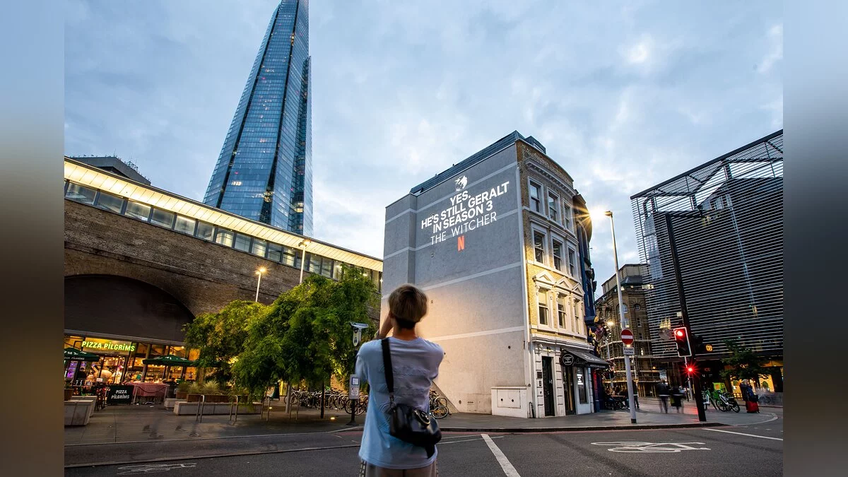 «Да, он все еще играет Геральта в третьем сезоне “Ведьмака”», — гласит рекламная надпись, которую вывели на стены зданий с помощью проектора. Пост с фотографиями появился в официальном аккаунте в Twitter.