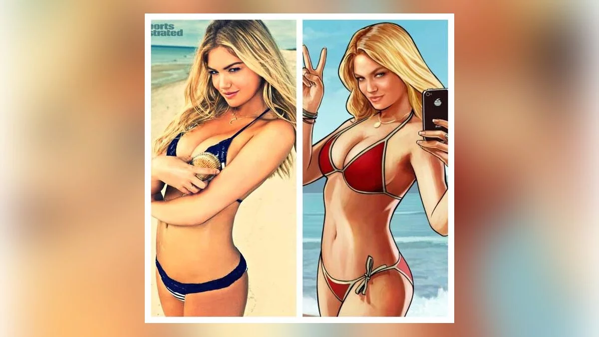 Арт с блондинкой из GTA 5 срисовали с фотографии модели Кейт Аптон