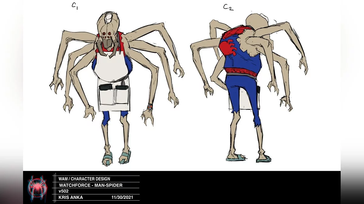 Художник Крис Анка (Kris Anka) поделился официальными концепт-артами с персонажем, который не попал в финальную версию мультфильма «Человек-паук: Паутина вселенных». Им оказался Сверхпаук, который впервые появился в мультсериале 1994 года, а позже засветился в комиксах.