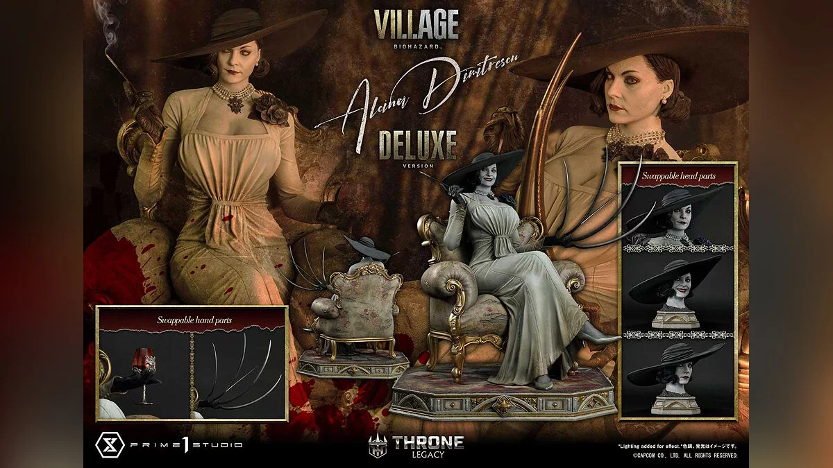 Производители обещают бескомпромиссное качество фигурки, за которым также следит Capcom. Помимо самой Димитреску, в комплекте идет несколько запасных частей — сменные головы, руки и когти — и дополнительная фигурка из хрусталя.