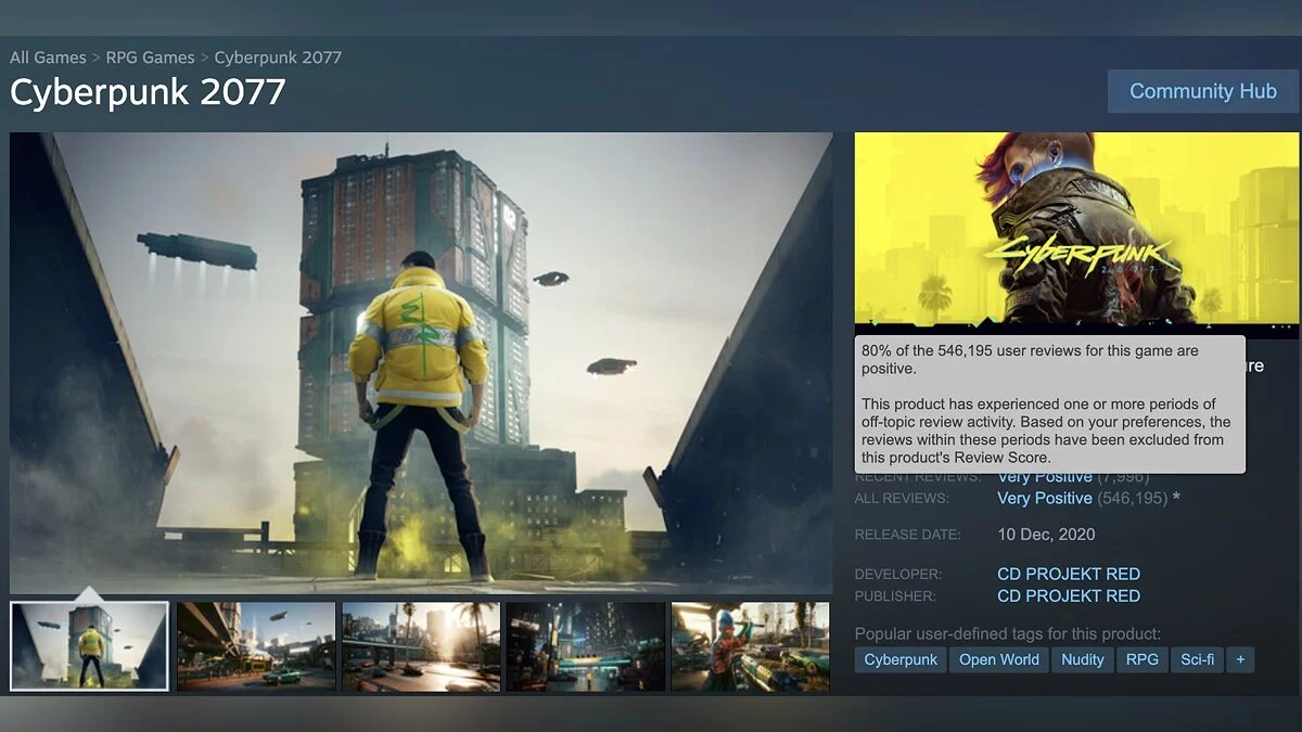 У Cyberpunk 2077 теперь 80% положительных отзывов в Steam. CDPR поблагодарила игроков