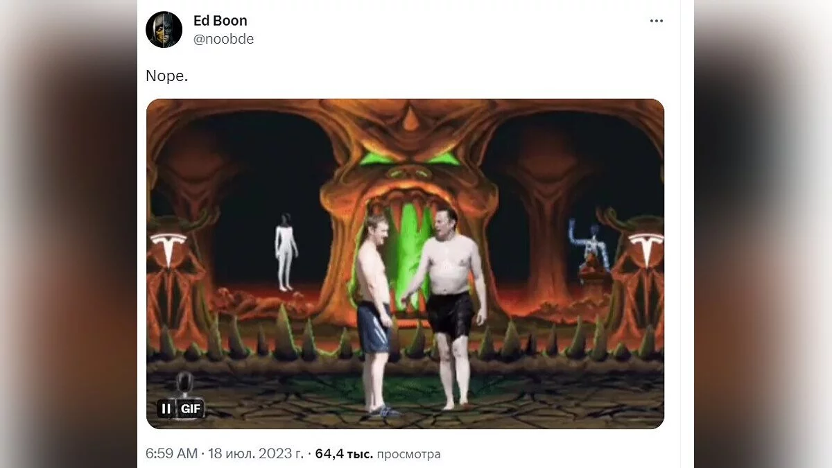 Шумиха вокруг потенциального боя между миллиардерами Илоном Маском (Elon Musk) и Марком Цукербергом (Mark Zuckerberg) не утихает. Недавно создатель Mortal Kombat Эд Бун (Ed Boon) опубликовал в социальных сетях забавную гифку, где показано, как один из участников поединка делает жестокое фаталити.