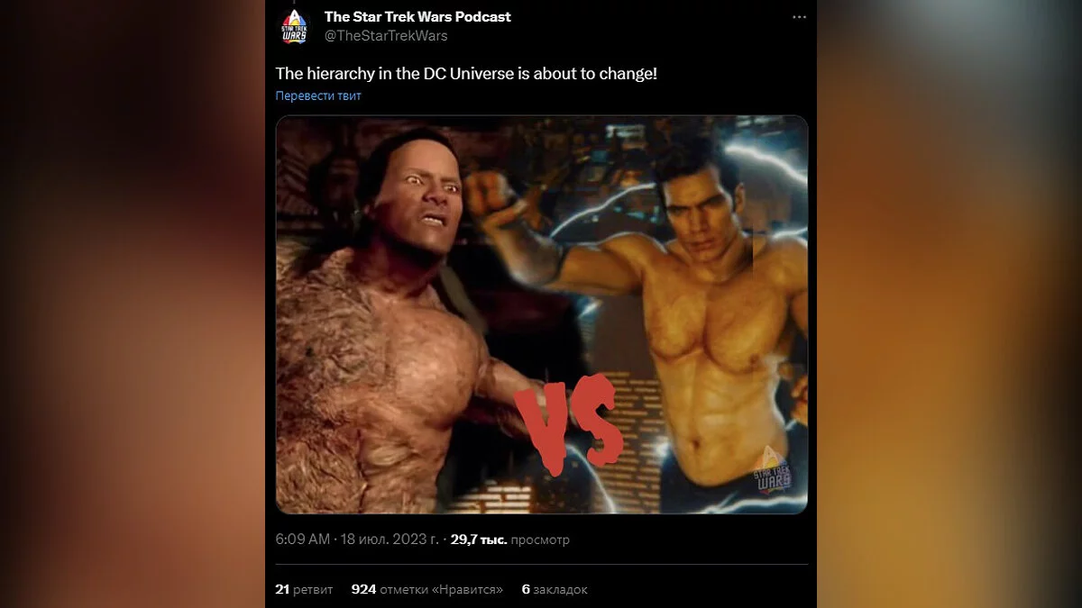 Другой пользователь с ником @CastleDead опубликовал кадр с последним появлением Супермена Генри Кавилла (Henry Cavill). Под постом собралось множество комментариев, высмеивающих чересчур пластиковую внешность героя.