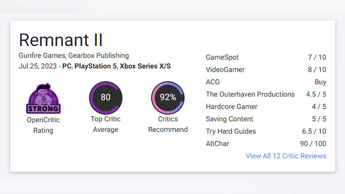 В сети начали появляться полноценные обзоры соулслайк-экшена Remnant 2. На момент написания заметки у игры 80 баллов на OpenCritic и 81 балл на Metacritic.