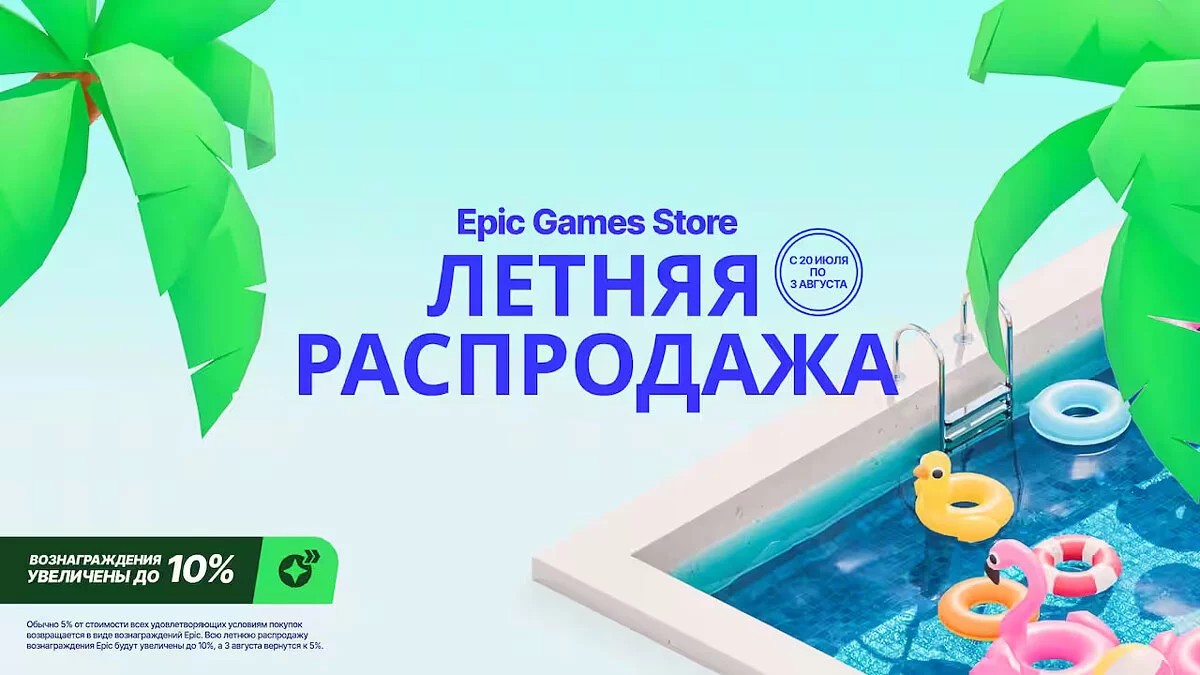 В Epic Games Store запустили большую летнюю распродажу со скидками до 75% и увеличенным кешбэком. Во время акции Epic Games будет возвращать пользователям 10% от суммы всех покупок (вместо 5%). Распродажа продлится до 3 августа 18:00 по московскому времени.