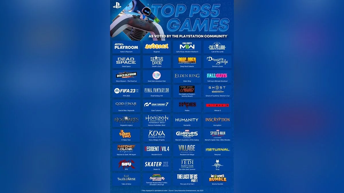Согласно подсчетам Sony, сейчас библиотека PS5 насчитывает больше 2500 игр. Ниже представлены 40 лучших проектов, выбранных в ходе опроса среди геймеров. Список включает ремейк Demon's Souls, Elden Ring, Hogwarts Legacy и не только.