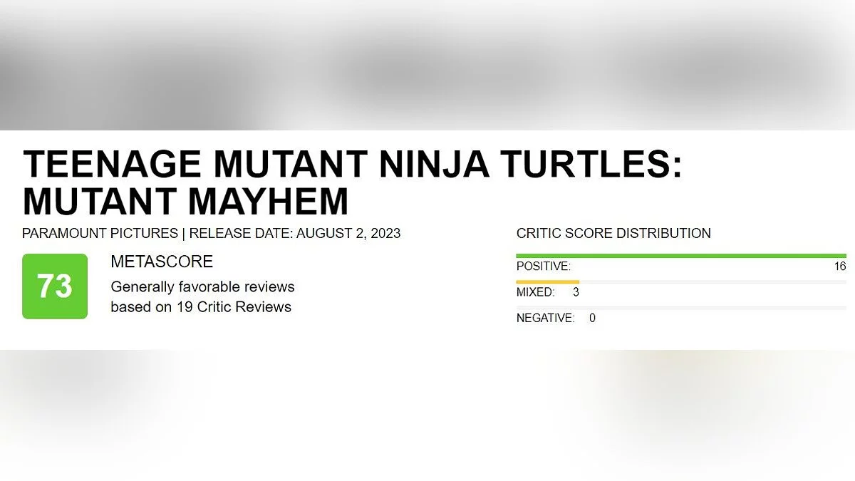 В сети появились первые оценки компьютерно-анимационного фильма «Черепашки-ниндзя: Мутантский разгром». Большинство критиков положительно оценили проект. На момент написания новости его рейтинг на Metacritic составляет 73 балла.