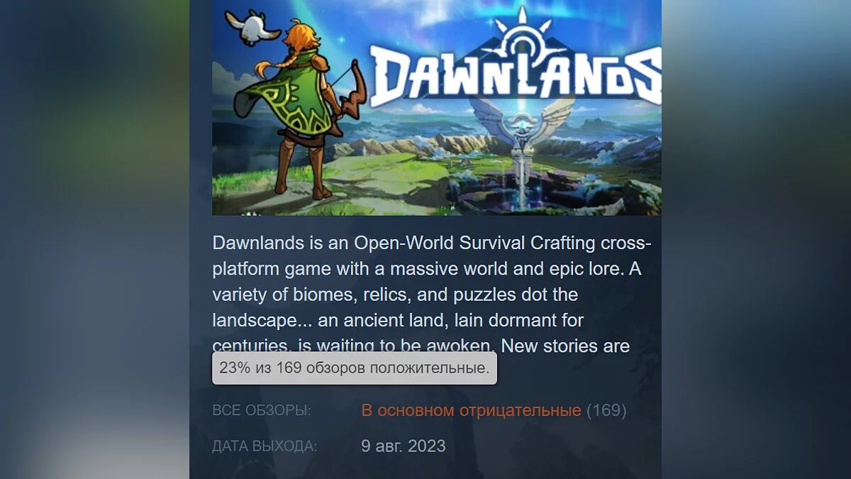 После релиза выяснилось, что Dawnlands не может конкурировать ни с Genshin Impact, ни с Valheim. Игру уже разгромили в Steam — она получила всего 23% положительных отзывов. Проект называют очень сырым — его ругают за плохую графику, ужасную оптимизацию и большое количество багов, включая ошибку с подключением к интернету, которая часто появляется при запуске.
