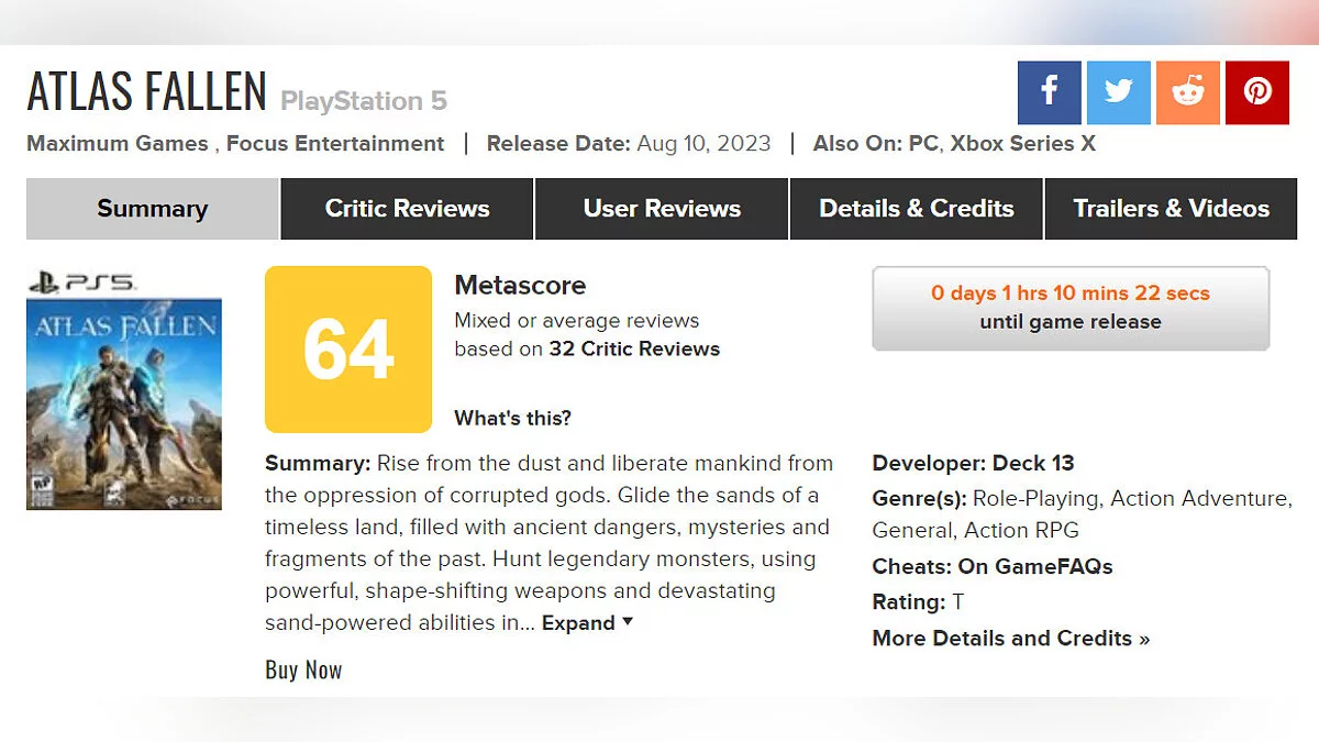 Atlas Fallen не впечатлила критиков — появились первые оценки
