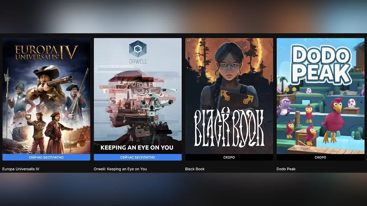 В Epic Games Store началась очередная бесплатная раздача. Следующие семь дней пользователи магазина могут забрать стратегию Europa Universalis 4 и симулятор слежки Orwell: Keeping an Eye on You. У обоих проектов очень высокие оценки в Steam.