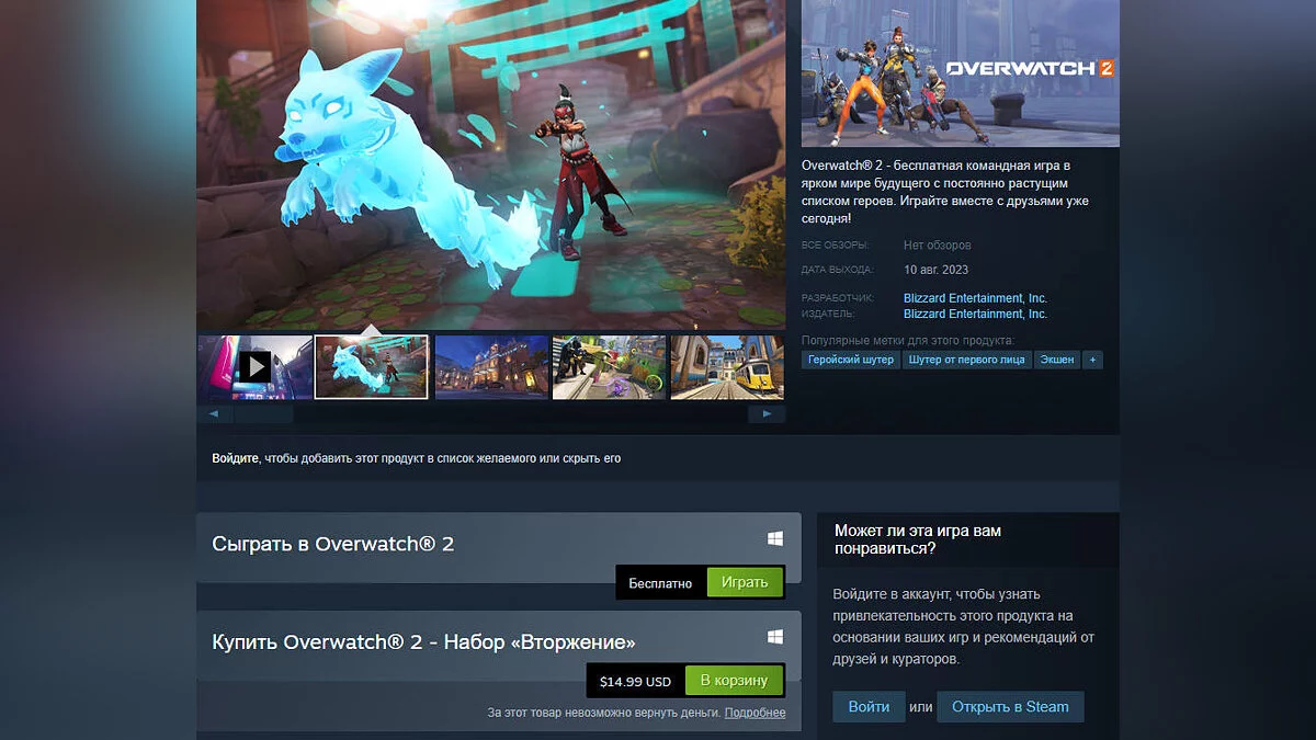 В Steam состоялся релиз Overwatch 2 — это первая игра Blizzard, выпущенная в магазине Valve. Для шутера нужна учётная запись в Battle.net.