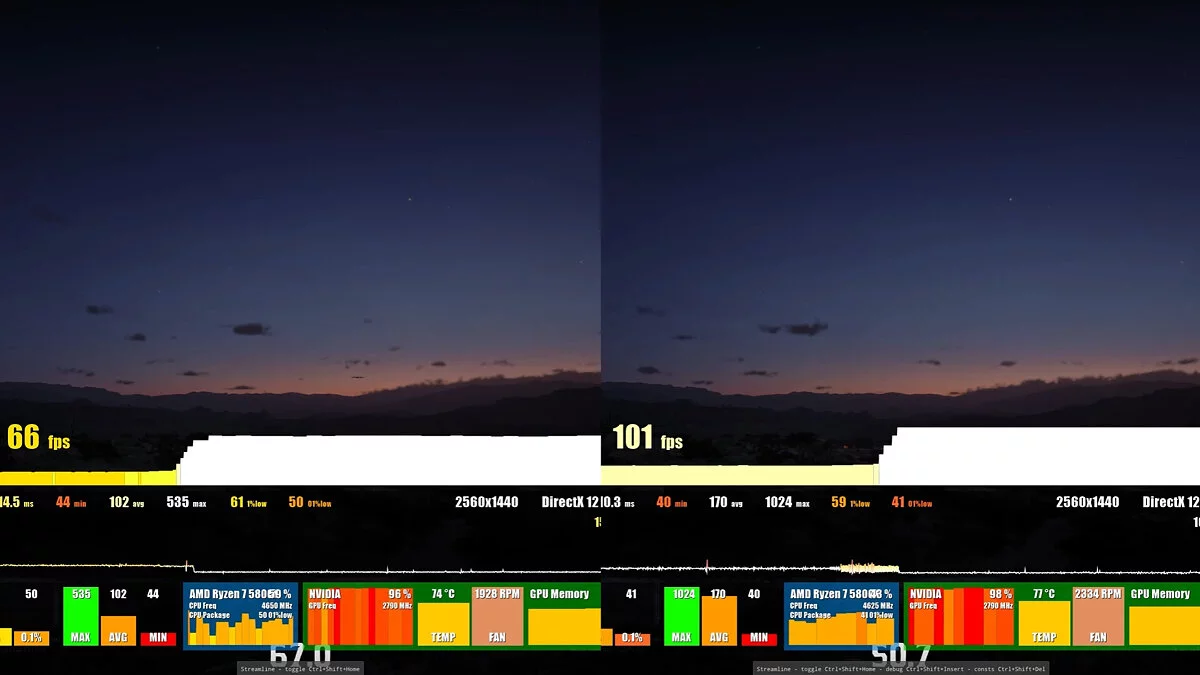 Для теста использовался компьютер с процессором AMD Ryzen 7 5800 и видеокартой NVIDIA GeForce RTX 4070 Ti. Игра была запущена в разрешении 2560x1440.