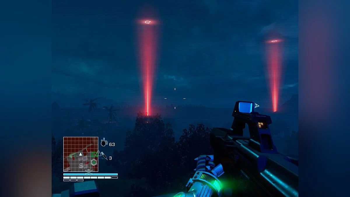По сути все, что происходит в Far Cry 3: Blood Dragon — это пародии или отсылки к классическим боевикам или шутерам. Сюжет и его повороты предсказуемы, все идеи слизаны откуда-то, персонажи банальны, а диалоги будто бы переписаны с какого-нибудь фильма со Шварценеггером. Но все это сделано так, что вызывает не отвращение от серости, а приступы дикого хохота. Это не экшен, а комедия. Спустя некоторое время, игрок привыкает к происходящему и этой удивительной атмосфере. Казалось бы, очередная шутка уже не вызовет смех, но тут происходит что-нибудь такое, что снова придает свежести юмору.
