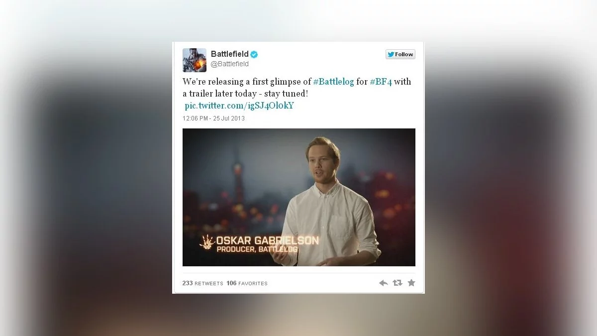 Студия DICE в официальном Twitter опубликовала информацию, связанную с Battlelog для Battlefield 4.