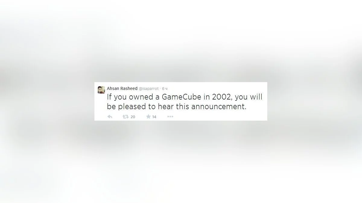 Интрига на этом не закончилась. Господин Рашид продолжил заводить публику: «Если вы владели GameCube в 2002, то вы будете особенно рады услышать эти новости».