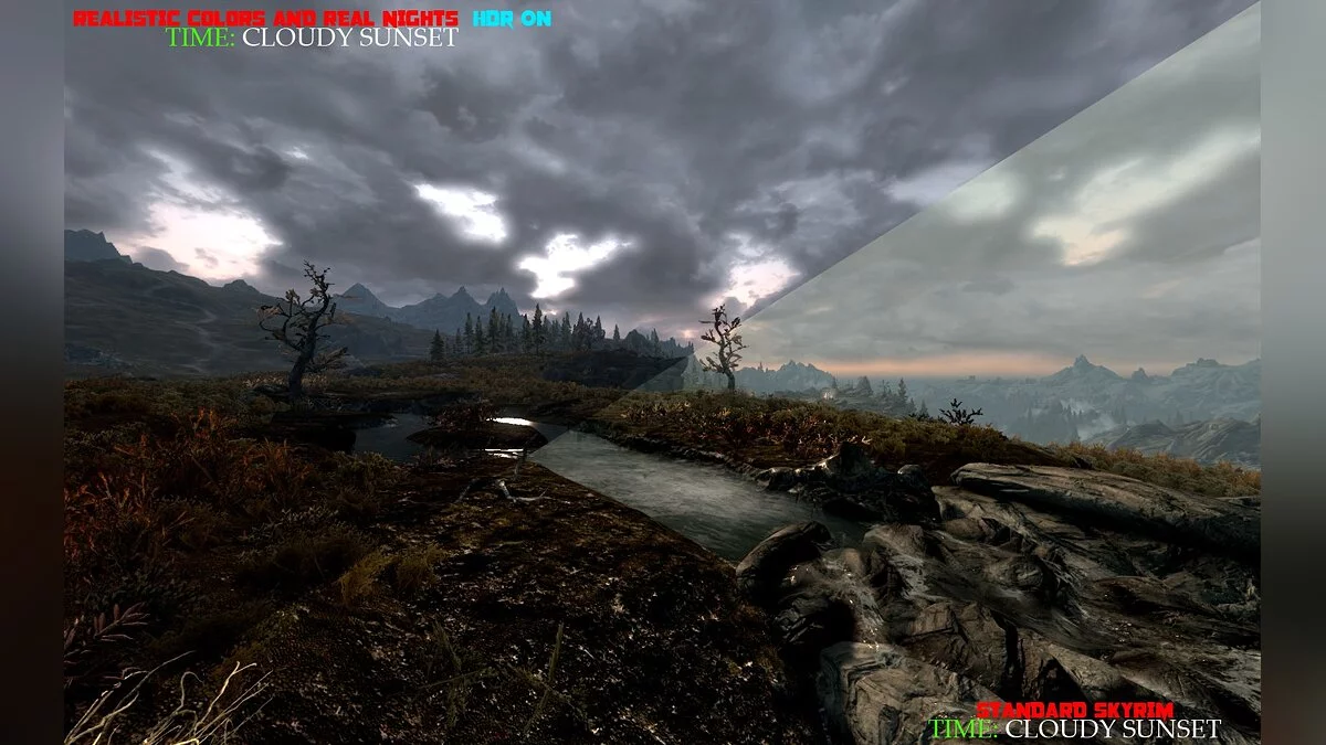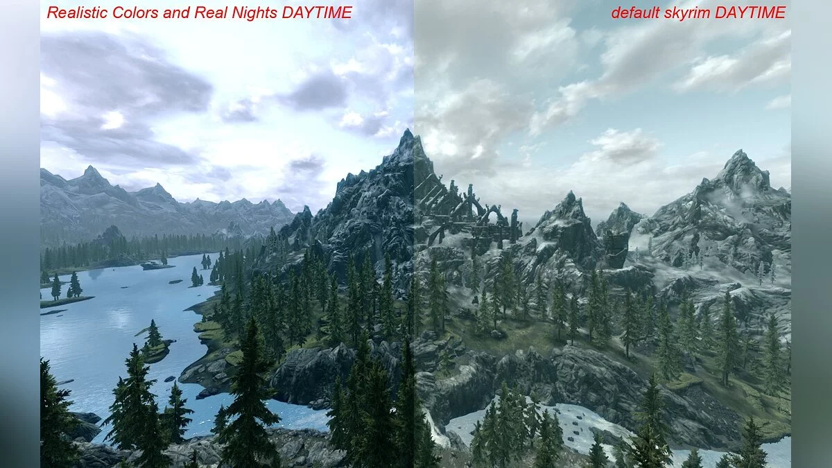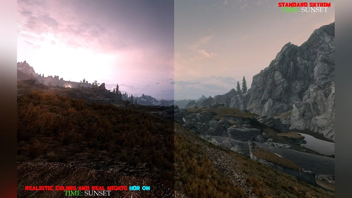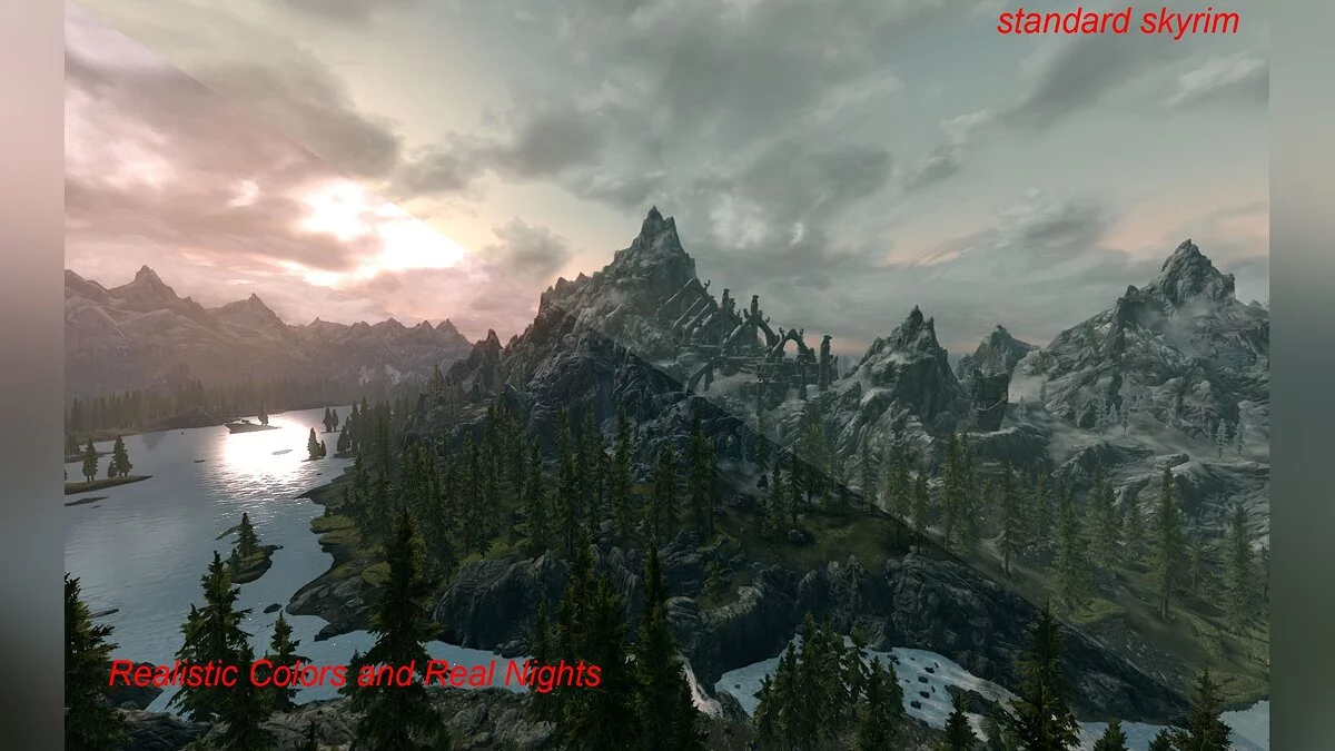 Называется эта модификация Realistic Colors and Real Nights. В настоящий момент мод уже дошёл до версии 1.4 и выделяется среди прочих тем, что он не делает игру похожей на какой-то фильм ужасов и не превращает игру в мультик. Тут всего в меру. Благодаря этому, выглядит мир Skyrim ещё более завораживающе и волнующе.