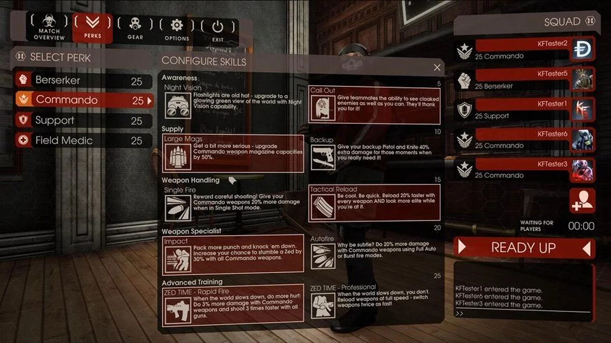 Коммандос, следующий игровой класс, является спецом в огнестрельном оружии. Его козырь — это различные винтовки и автоматы, поэтому именно он наносит наибольший урон врагам, предпочитая оставаться от них подальше. Различные его перки направленны как на улучшение собственных качеств, так и на помощь всей команде — например, возможность прошмыгнуть мимо врагов незамеченными.