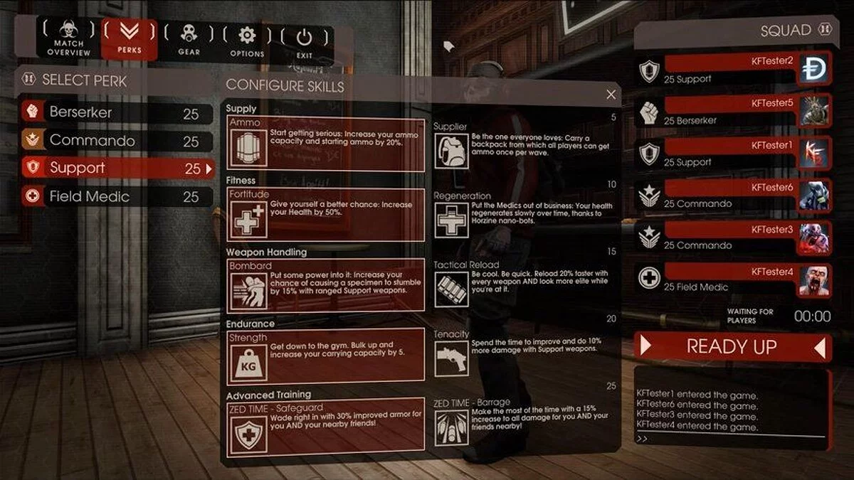 Специалист поддержки — название говорит само за себя. Правда поддержка в этом случае осуществляется не при помощи аптечек и патронов, а благодаря мощному дробовику, который у него всегда в руках. Лишь треть его перков касается всей команды.
