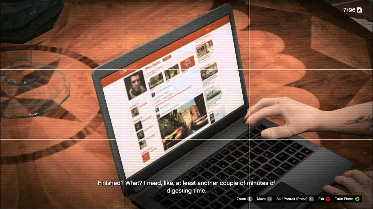 - Джимми, когда сидит за кухонным столом в доме, просматривает страничку Нико Беллика в LifeInvader;