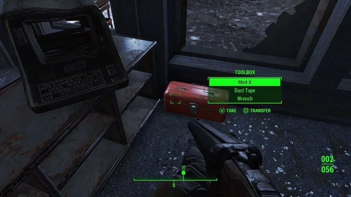 Однако дабы не таскать лут в рюкзаке, разработчики Fallout 4 сделали возможность хранить все собранное имущество в верстаке (никаких ограничений на размер), так что складывайте туда все найденное, кроме, разве что, оружия, пищи и лекарств, и затем доставайте и используйте, когда это потребуется.